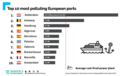 In a year of bumper profits for the industry, Transport & Environment (T&E) calls on ports to get behind EU-wide efforts to reduce shipping’s climate impact.