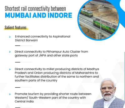 The project will provide a shorter route between the western and south-western parts of the country and central India, boosting tourism in the Ujjain-Indore region, including key attractions like the Sri Mahakaleshwar Jyotirlinga Temple. Additionally, the line will offer direct connectivity to the Pithampur Auto Cluster, which houses 90 large and 700 small to medium industries, connecting it with the gateway port of JNPA and other state ports.