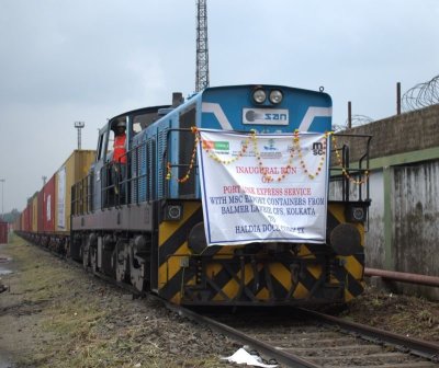 The train was ceremoniously flagged off by Sri Samrat Rahi, Deputy Chairman of Syama Prasad Mookerjee Port, Kolkata (SMPK). The event was graced by Shri Ratna Sekhar Adika, C&MD of Balmer and Lawrie; Capt. Nitin Puri, Regional Senior Vice President of MSC; Shri P. Srinivas Rao, Vice President of HTPL; Shri Pallab Bhatta, Senior General Manager of Electrosteel Group Castings; and Smt. Bharati Singh, Assistant Commissioner of Customs. Senior officials from the Port, Balmer Lawrie & Co. Ltd., MSC Line, shipper M/s Electrosteel Castings Ltd, and rail operator Hind Terminals were also in attendance.